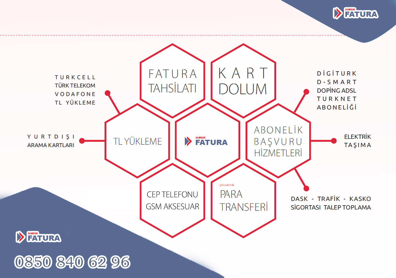 ** SAMSUN FATURA ödeme işlemlerinde ödeme kuruluşları üzerinden işlem sağlayarak tüm hizmetleri tek çatı altında sağlayan firmadır.